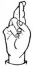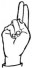 На ћирилици написано ХРАНИМИР РАДМАНОВАЦ састоји се из 18 слова [?]. Исписано ћириличном једноручном азбуком за глувонеме: